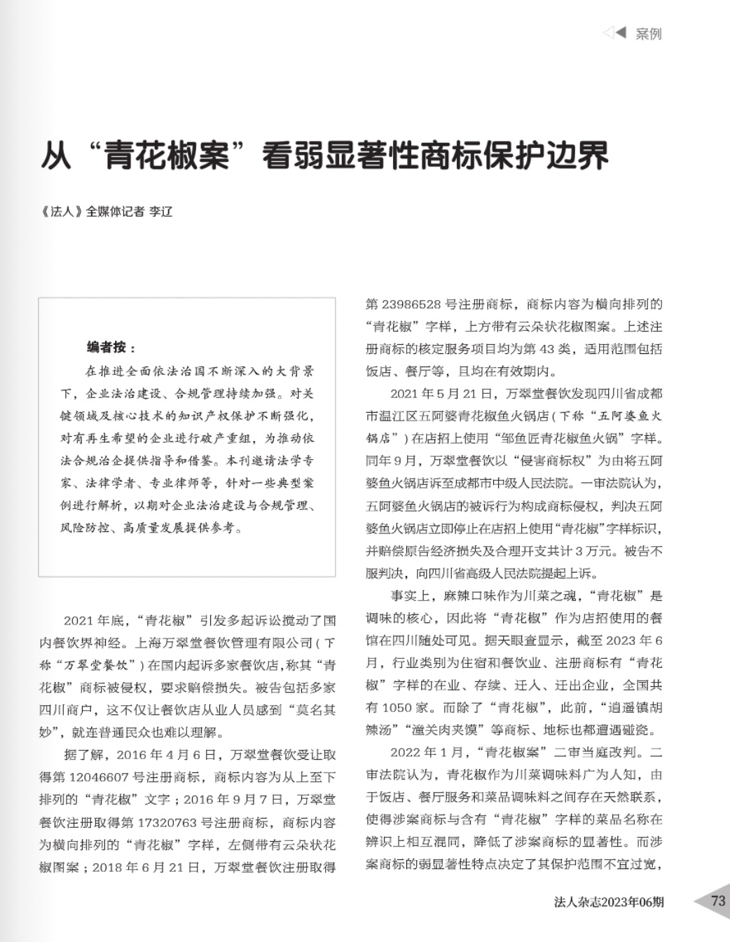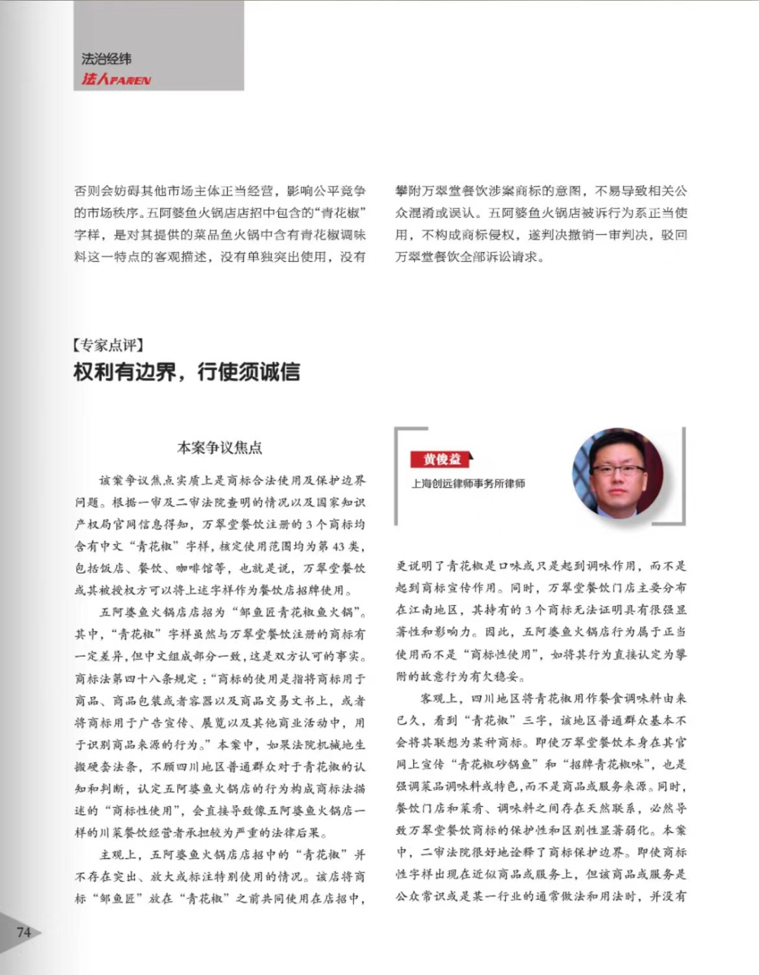 阿勒泰辉知简讯 | 辉知队黄俊益律师应“法治日报”旗下杂志邀请,就“青花椒”案发表专家点评