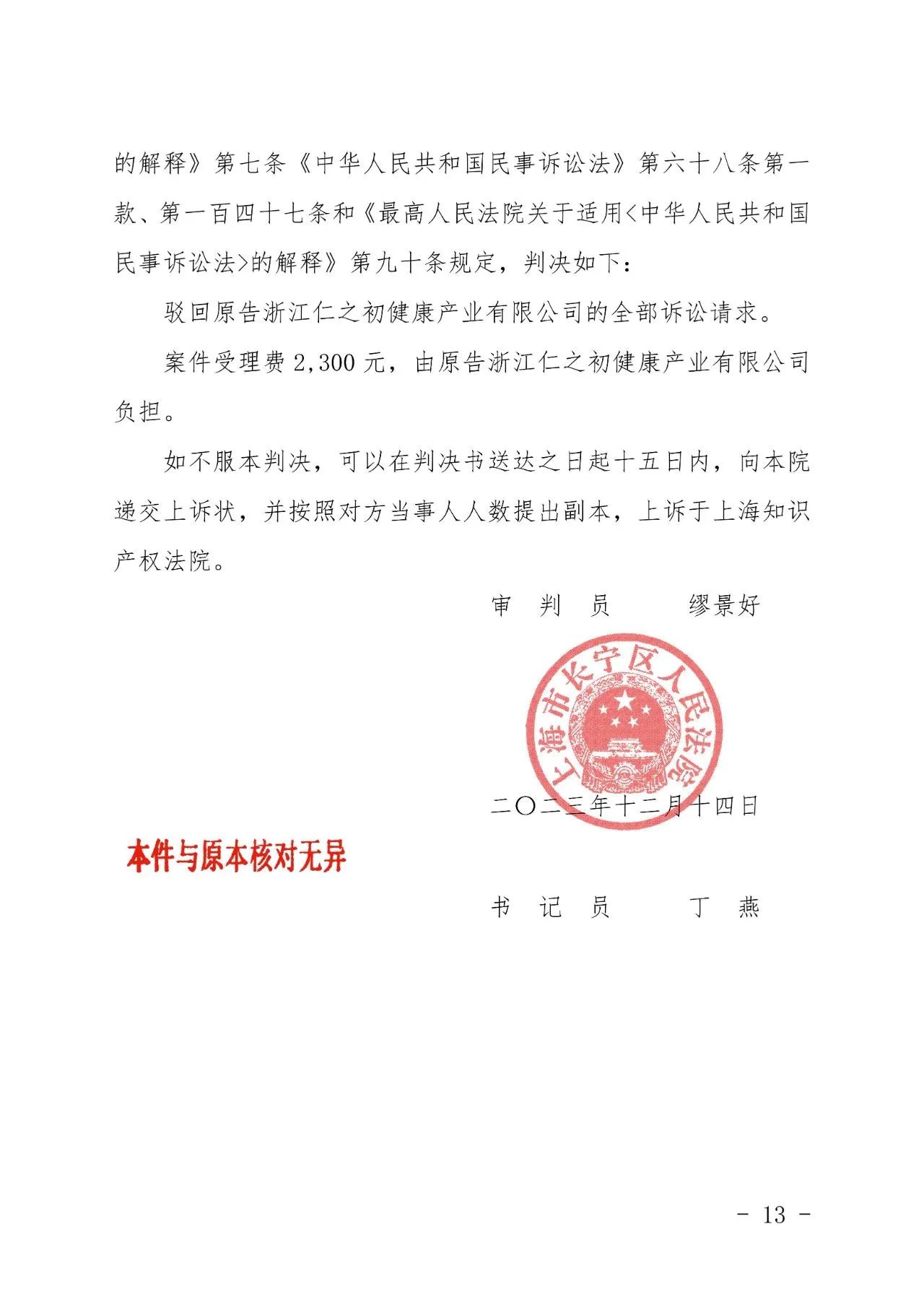 阿勒泰辉知胜诉佳讯 | “仁之初健康”著作权及不正当竞争纠纷案,法院:驳回全部诉讼请求!